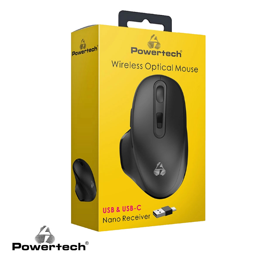 POWERTECH EXGMOU09 aσύρματο ποντίκι/ oπτικό/ USB & USB-C δέκτη/ 1600DPI/ μαύρο